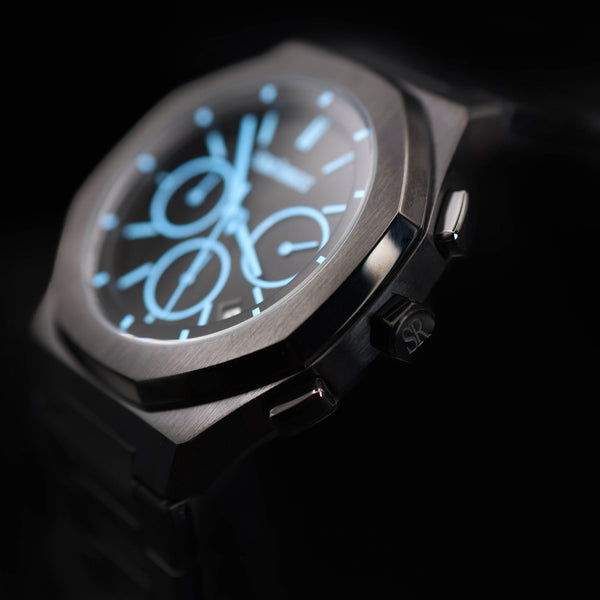 Confeccionado en acero inoxidable de la más alta calidad, cada detalle de este reloj ha sido cuidadosamente elaborado para reflejar la excelencia en relojería. La pulsera de eslabones finamente trabajados se adapta a tu muñeca, mientras que la esfera, protegida por un cristal resistente a los arañazos, revela un juego de agujas luminosas y marcadores de hora meticulosamente grabados.